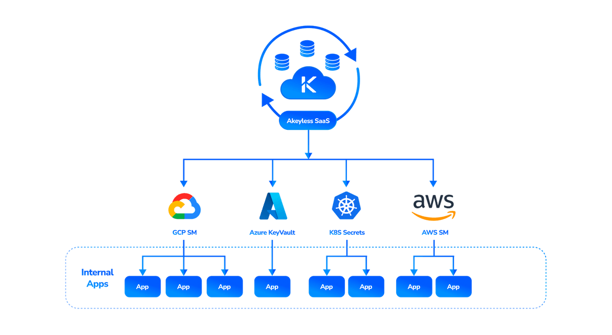 The first two pillars stem from the system’s SaaS basis. It effectively provides a single cloud-based vault for all secrets, eliminating the need for siloed secrets management dependent on their source. As a SaaS service, it requires no new infrastructure, and no specialist staff nor secrets management team. It also offers a 99.99% availability and supports a configurable caching period in case of short term total internet failure. When a new app is developed, the developer replaces the secret with a link to the SaaS service, eliminating the need for local secret storage altogether.
