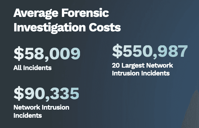 The cost of forensic investigations has also increased. For the 20 largest network intrusions, the average cost increased by 24%, from $445,000 in 2021 to $550,000 in 2022.