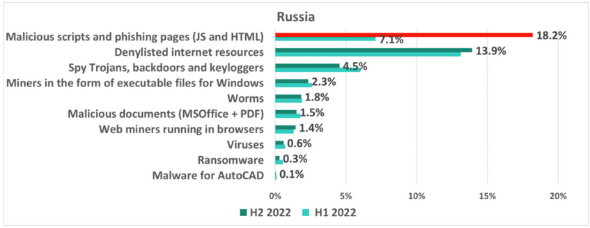 However, the most significant increase in H2 2022 was seen in Russia, where attacks increased by nine percentage points, with 39.2% of the ICS computers in the country being targeted.