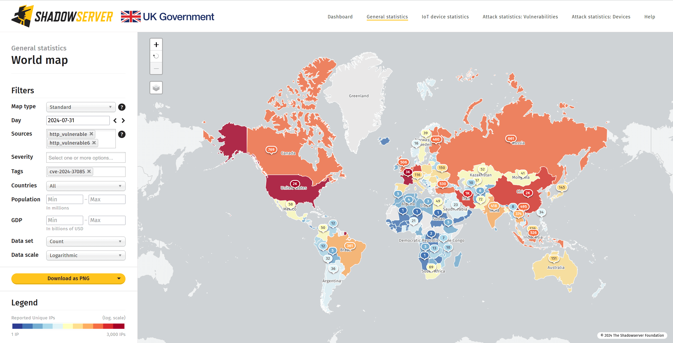 On Wednesday, The Shadowserver Foundation announced that it added CVE-2024-37085 to its list of tracked CVEs and that it observed more than 20,000 internet-accessible instances vulnerable on July 30. There appear to be no significant changes in the statistics as of July 31.