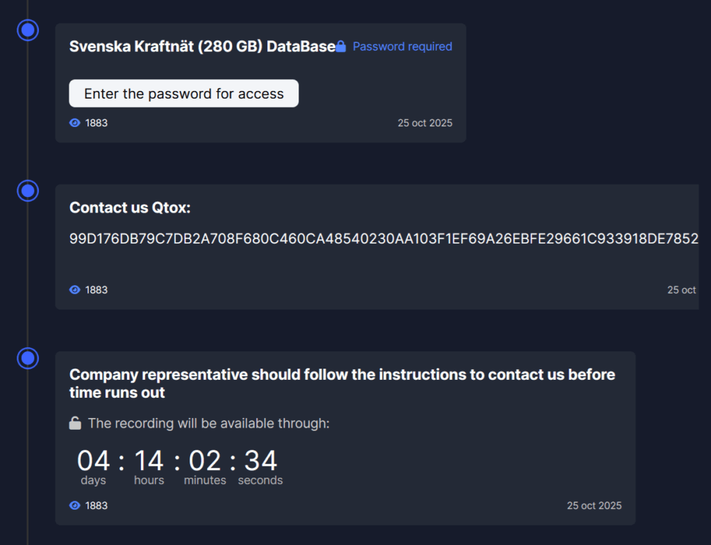 The data breach was disclosed shortly after the Everest ransomware group added Svenska kraftnät to its Tor-based leak site, which essentially confirms that the threat actor was responsible for the incident.