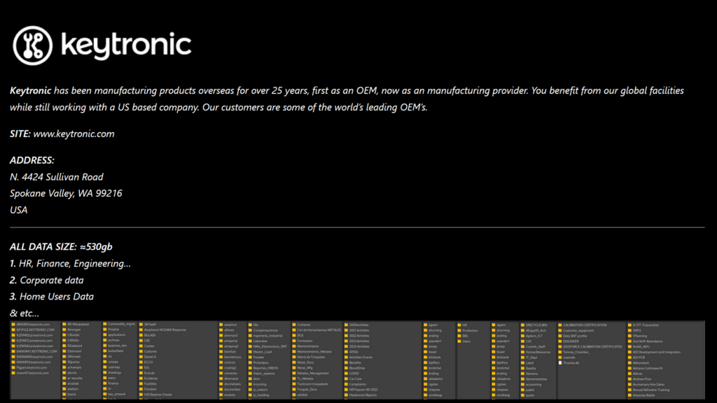 The investigation into the attack, Keytronic said, has determined that limited data was accessed and exfiltrated from its environment, including personally identifiable information.