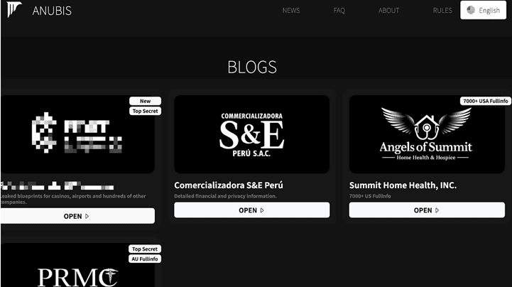 Anubis also operates its own blog. At the time of writing, only three victims are detailed. A fourth, currently labeled ‘New – Top Secret’ was added on February 25, 2025. Noticeably, two of the remaining three, are healthcare institutions.