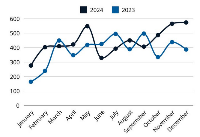 NCC Group on Wednesday published its cyber threat intelligence report for December 2024 and pointed out that the number of ransomware attacks seen at the end of the year is the highest of any month since it started tracking such activity in 2021.