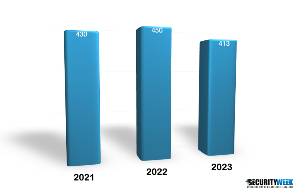 In 2023, SecurityWeek tracked a total of 413 M&A deals, which represents an 8% drop compared to 2022. In 2023, we started tracking deals involving pure-play cybersecurity companies separately and found that 243 transactions involved such firms.